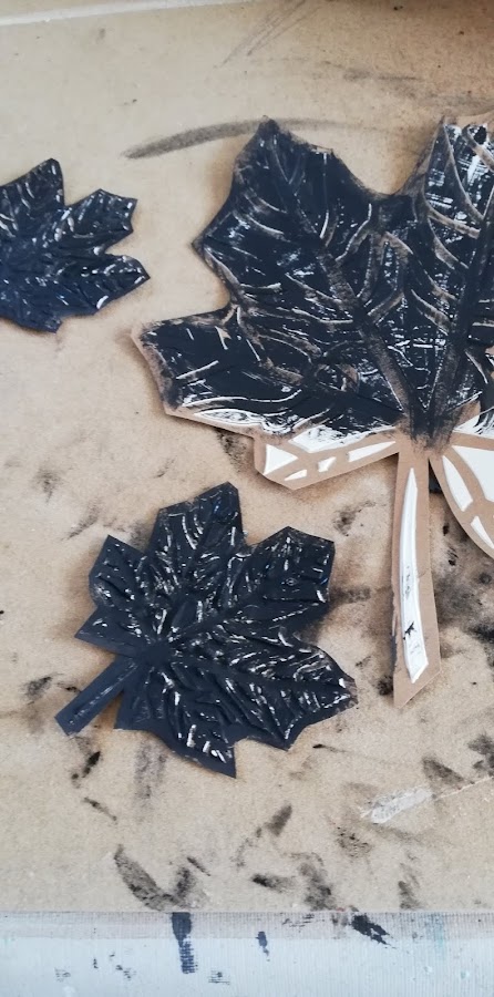 Trás acabar la calabaza, y a partir de una plantilla de hojas otoñales......