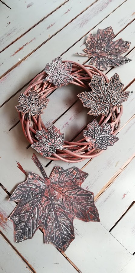 Y esta otra hoja siguiente le apliqué calor nada más retirar la plantilla. Queda diferente...no sé cual me gusta más¡