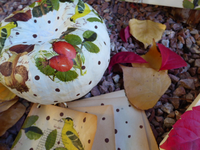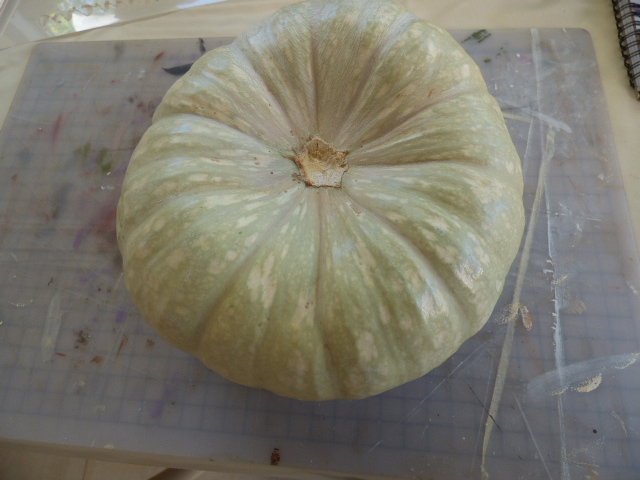 Todo empezó con la cababaza.......un día paseando, pasé junto a un campo de calabazas......al borde del camino encontré ésta que seguramente habían desechado por tener una especie de "mordisco" en la parte inferior. A mí me servía perfectamente para lo que tenía pensado hacer, así que cargué con ella.