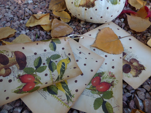 Hojas del mismo libro de hace unas semanas, éstas decoradas con la misma servilleta que he usado para todo lo que os enseño hoy.