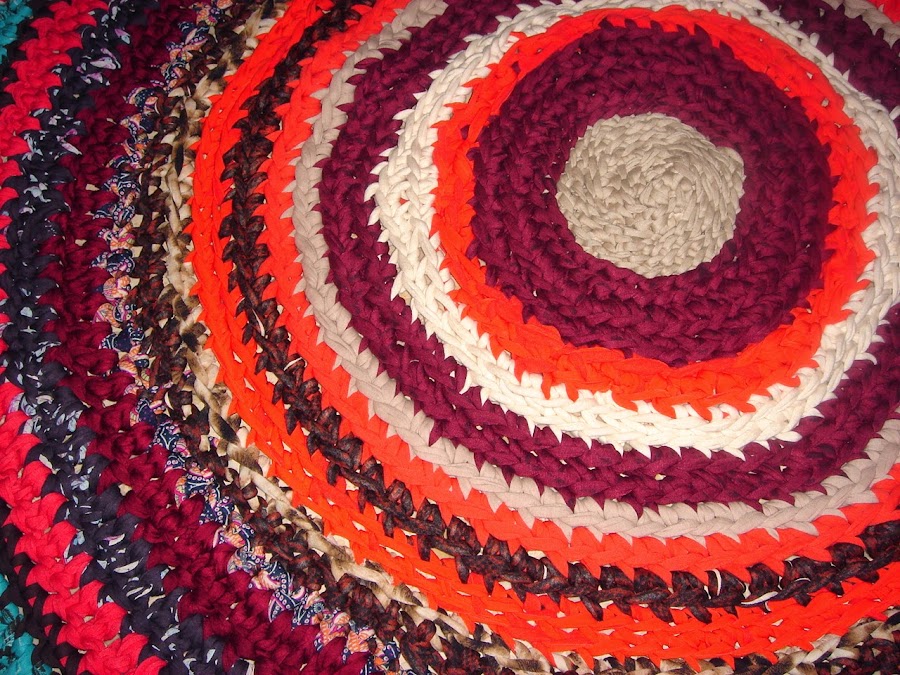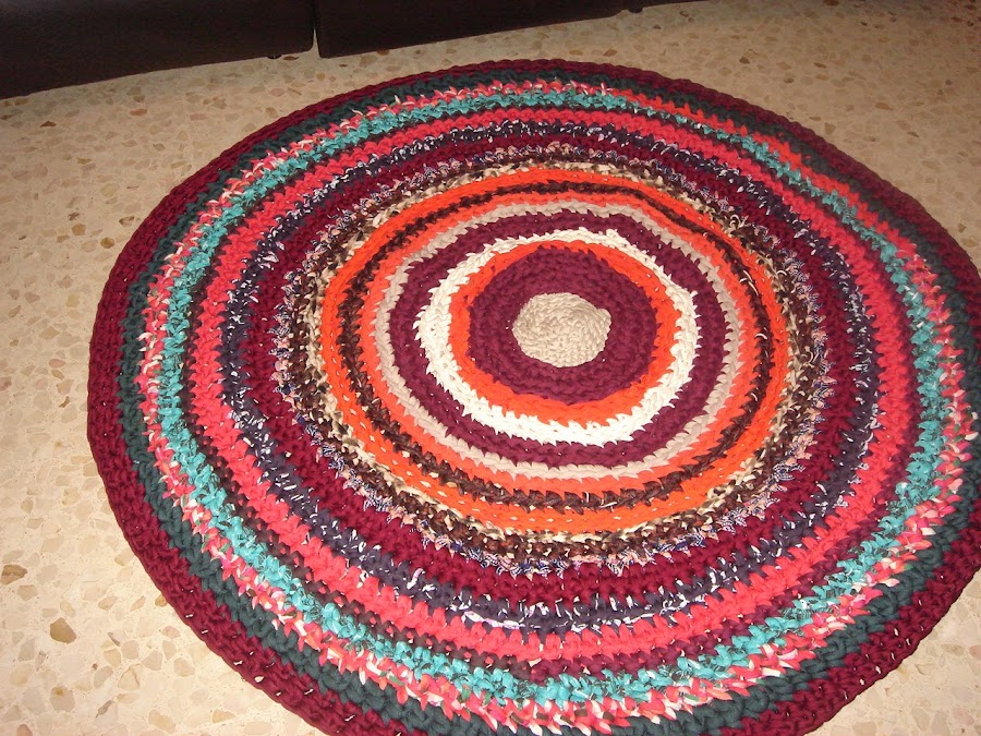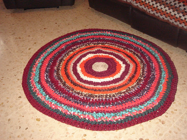 Pues con la calor mi madre me ha hecho otra alfombra de trapillo , que manos tiene para hacer estas cosas , la primera la podeis ver AQUI , me gusta mucho los colores que ha elegido este año.