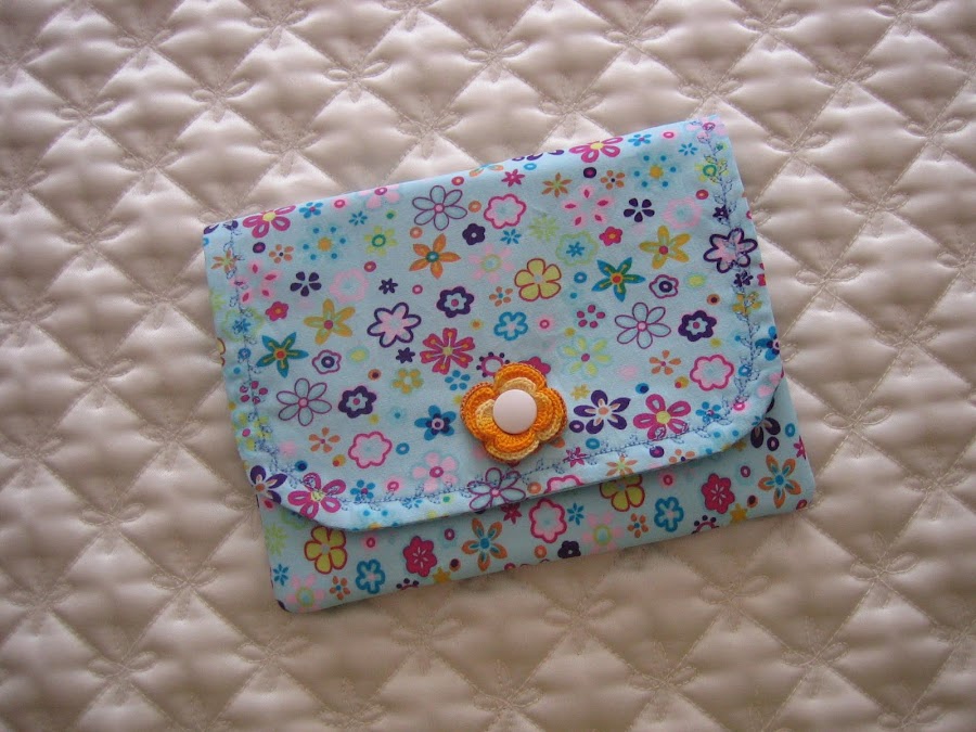 Esta bolsica ya llevaba unos dias cosida ,,, solamente le faltaba ponerle el adorno ...al final me he decidido por usar esta flor tan chula de ganchillo que me envio mi amiga Quima y ha quedado asi de mona.