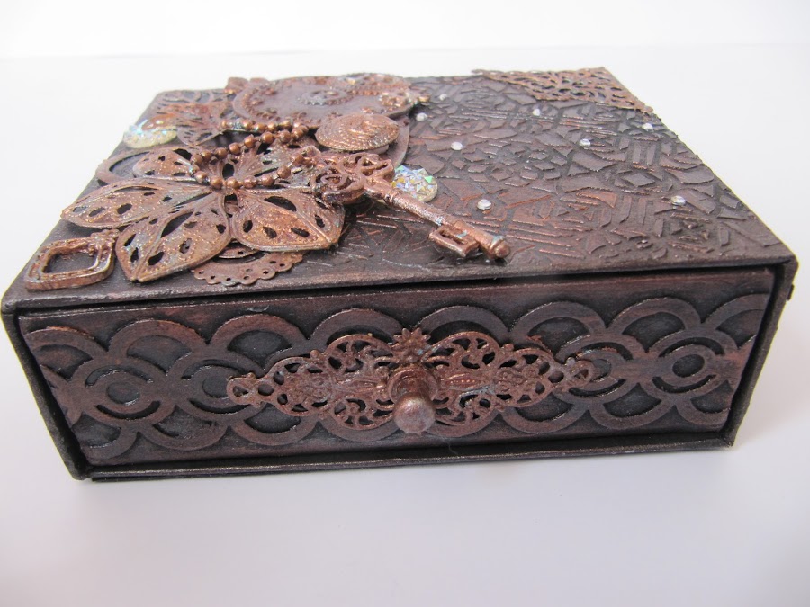 Como he dicho es una caja de colonia reciclada, me gusto que fuese tipo cajonera, pero una vez terminada nadie lo diría, con ese aspecto envejecido y esa patina!