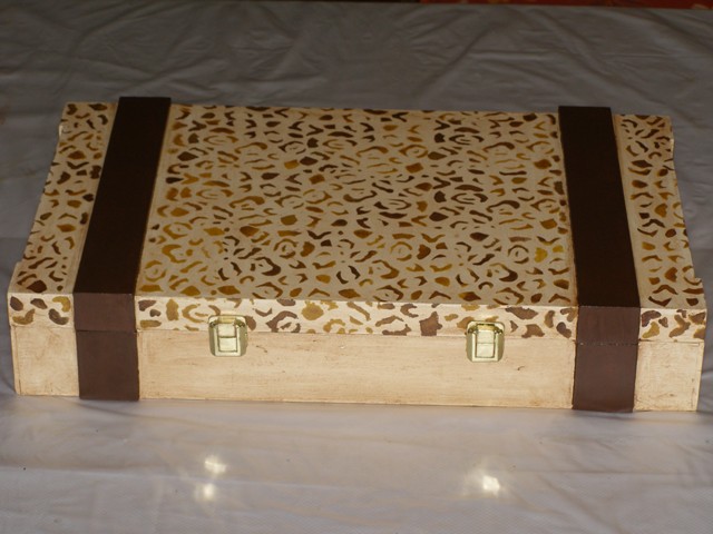 Después de tanto tiempo, aquí os dejo esta caja decorada a lo leopardo. Es una de las que me daba mi viejito (las del vino).
