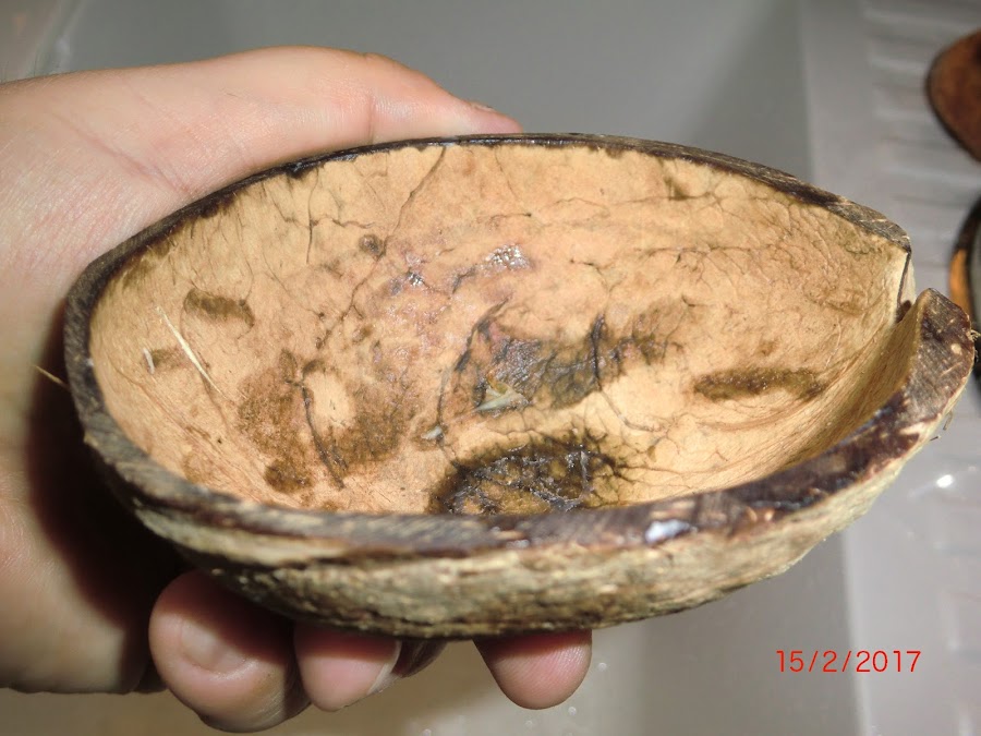 Resulta que cada vez que compro coco entero, acabo guardando su cáscara si se rompió bien. O cuando he ido de restaurante y he comido de postre coco helado (el que va con media cáscara de coco auténtico), también. Y así llegué a apilar unos cuantos medios-cocos incapaz de tirarlos y esperar a darles algún uso.