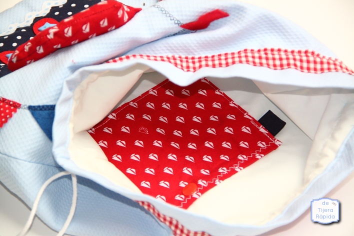 No tenía claro si publicaría esta semana algo más y como tenía estas fotos preparadas al final me he animado a acabar la entrada. Sigo con la temática marinera, el modelo lo conocéis de sobra pero no estoy segura de si había publicado alguna mochila para guardería con barco pirata combinada con fondo liso en azul. Con estrellitas tenéis la de Jokin, con rayas hay varias como la de Marco y el otro día os mostraba este mismo diseño sin relieve.