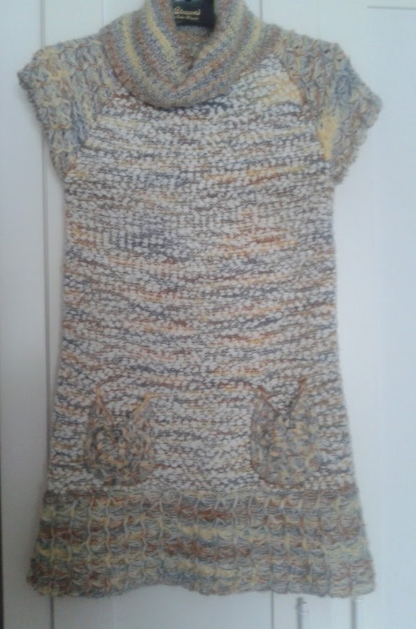 La siguiente está hecha con lana de los "chinos" , pero al verla pensé me vendría fenomenal para un mini vestido (casi parece un jersey) que me estoy poniendo este invierno con leotardos, y que tiene exactamente los mismos tonos, ademas es muy amorosa...