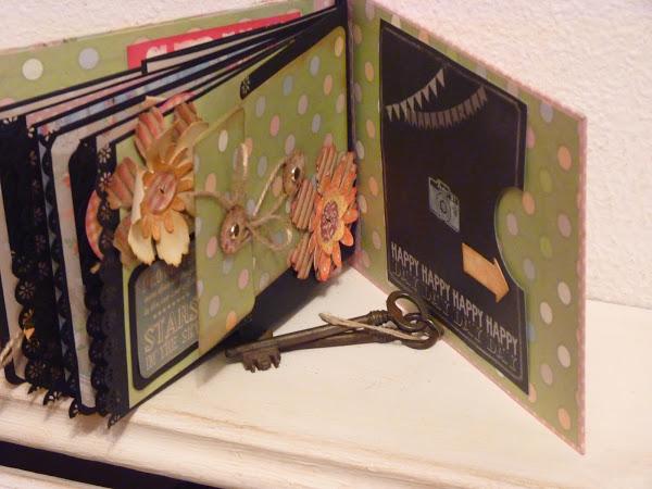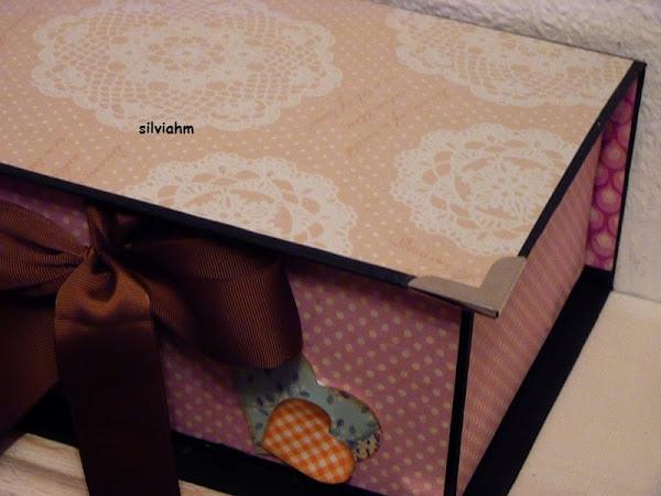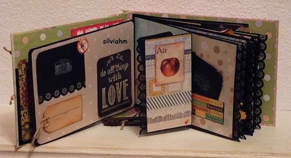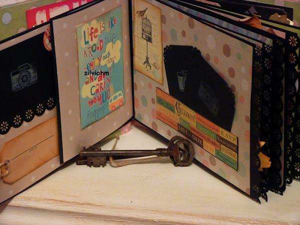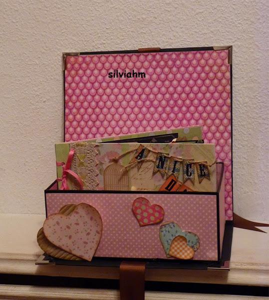 Este álbum lo ha regalado S. a una niña que recientemente tomó la comunión. Quería algo en tonos rosas, verdes... y esta colección que compré hace poco en Madrid nos vino perfecta. Además le hice la caja libro a juego, con los mismos papeles.