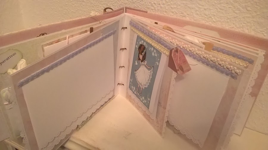 Conjunto de comunión que se marcha del taller en un par de horas: Muñeca tilda colocada en peana y álbum con encuadernación japonesa. Divino! Mrs. Crafter silviahdezmiguel@yahoo.es Tfno 626428584
