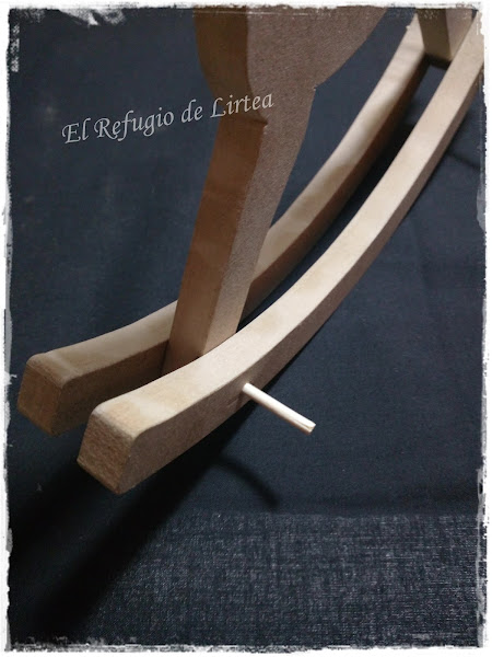 Encolo los balancines a las patas del caballito y una vez pegado con la ayuda del taladro hago un agujero para introducir parte de un palillo de dientes, así me aseguro de que quede bien firme.