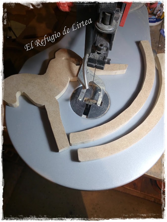 Parto de un tablón de DM y con mi sierra de calar corto la silueta y los dos balancines.