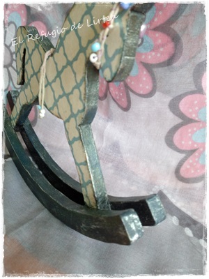 El balancín lo pinte de azul oscuro y le dí una pátina plateada que le da unos reflejos muy bonitos como podéis apreciar en las fotos.