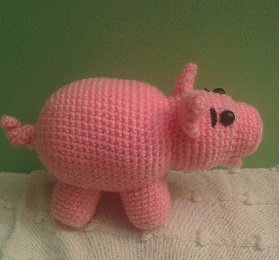 Como podéis imaginar le dije que sí, y lo dejé aparcado hasta tener algún ratito para hacerle uno, el caso es que la pobre se calló y estuvo con la pierna escayolada así que me puse con el cerdito para que la pobre llevará un poco mejor la inmovilidad que le supuso su pequeño percance y el resultado es este, me encanta el rabito.