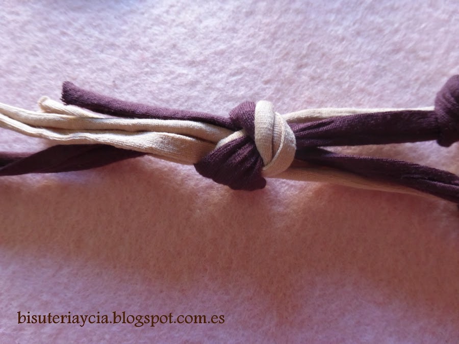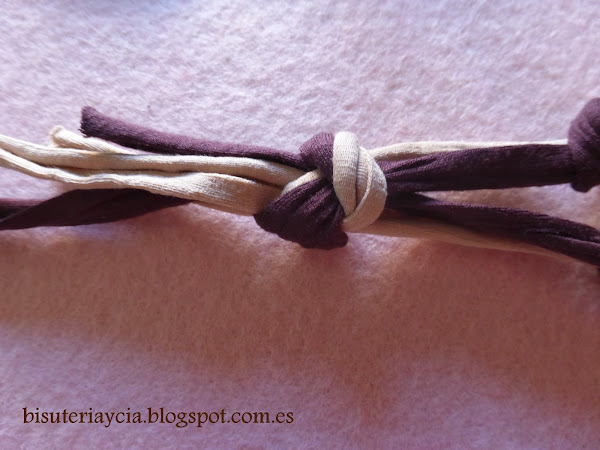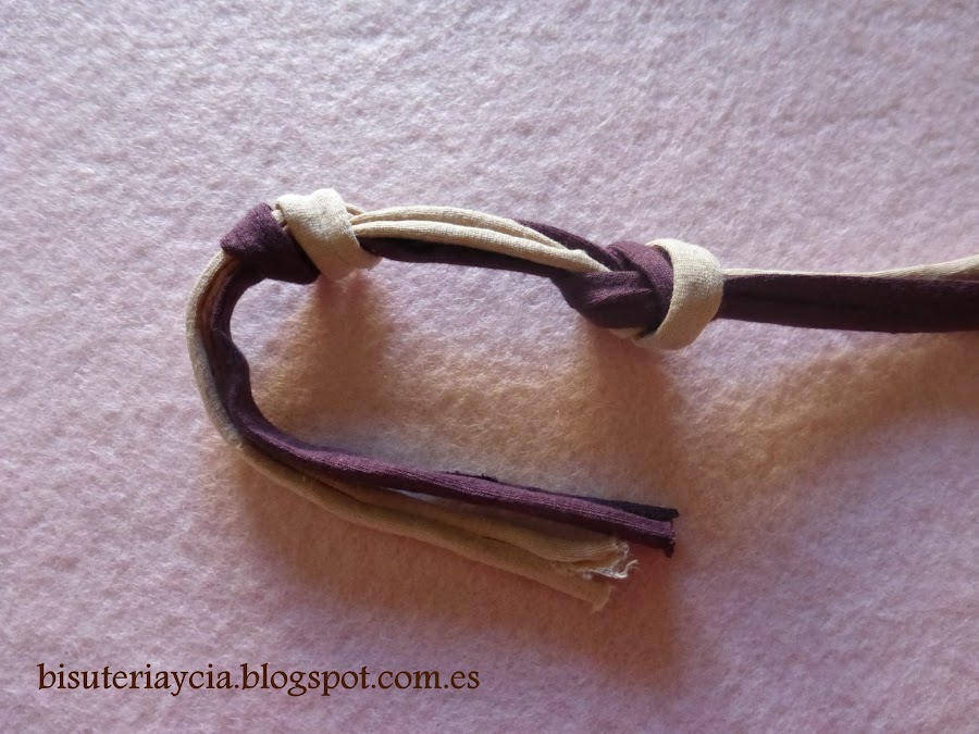 Para hacer este collar utilizaremos trapillo de dos colores.