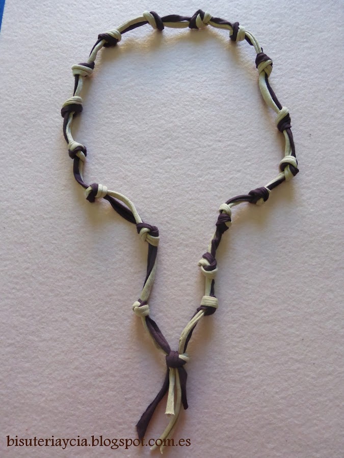 Para dar un mejor acabado al collar, podéis colocar algún abalorio en los extremos, o cortar las tiras acabadas en punta.