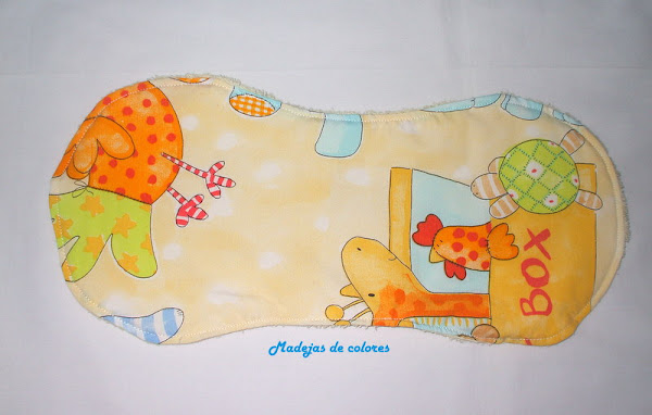 Sigo con otra toalla, pero de lactancia. Miren que estampado tan bonito, lleno de animales.