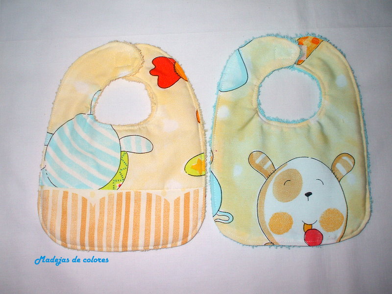 Y por último 2 baberos combinados, para aprovechar la tela.