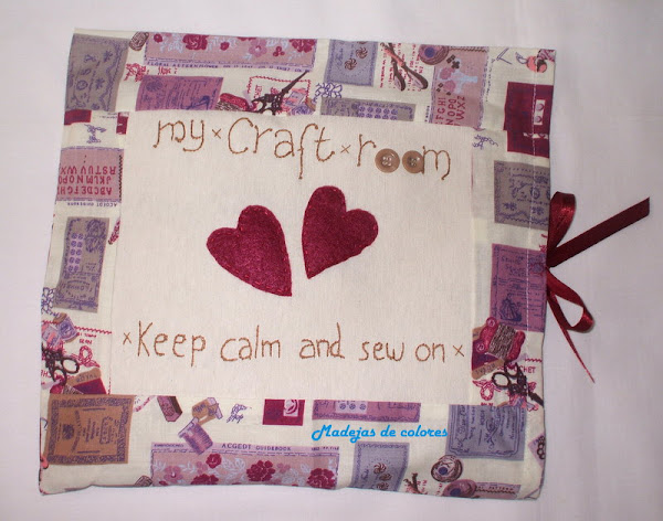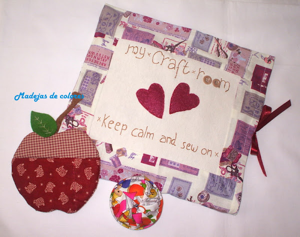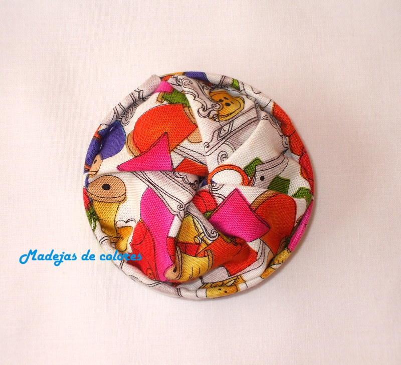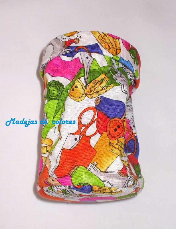 Y por último, un recoge hilos, que gracias a las indicaciones de Mari Carmen, que me llevó a este magnifico tutorial, pude hacerlo. Empleé una tela apropiada para ello y muy alegre.