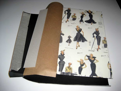 Paloma quiso poner el papel de mujeres antiguas de Rossi, tela de encuadernar negra, un álbum pre encuaderando tamaño A4 en negro, dos tapas, un lomo, cinta engomada kraft y sus instrucciones. Todo cortado a la medida, listo para montar.