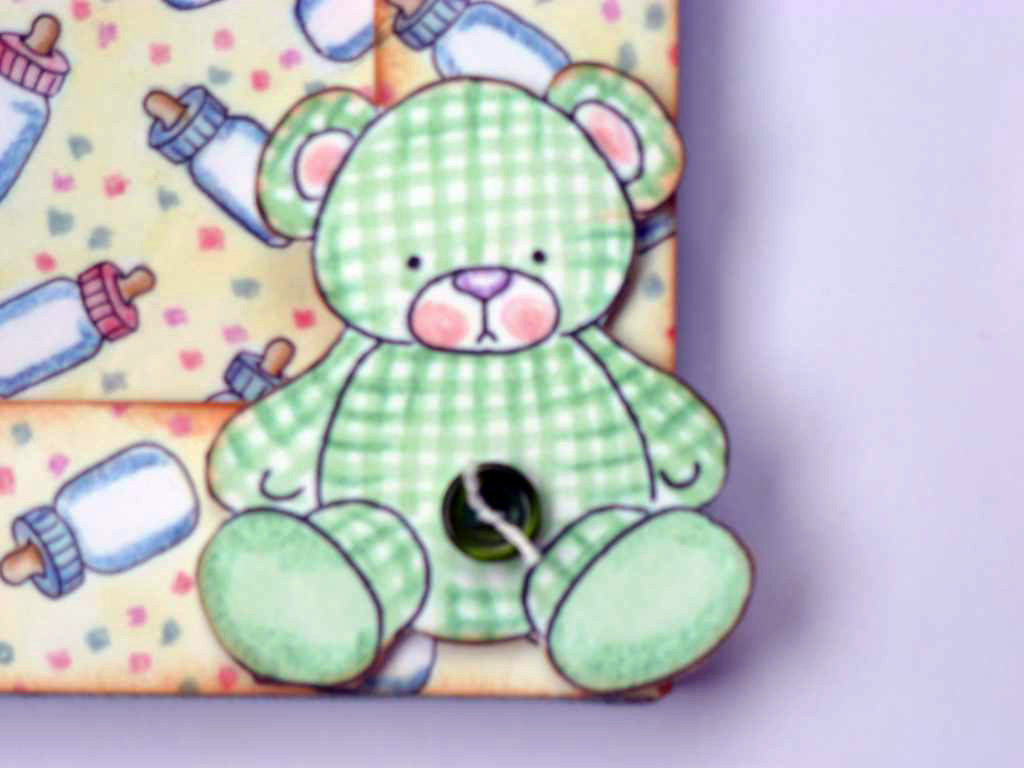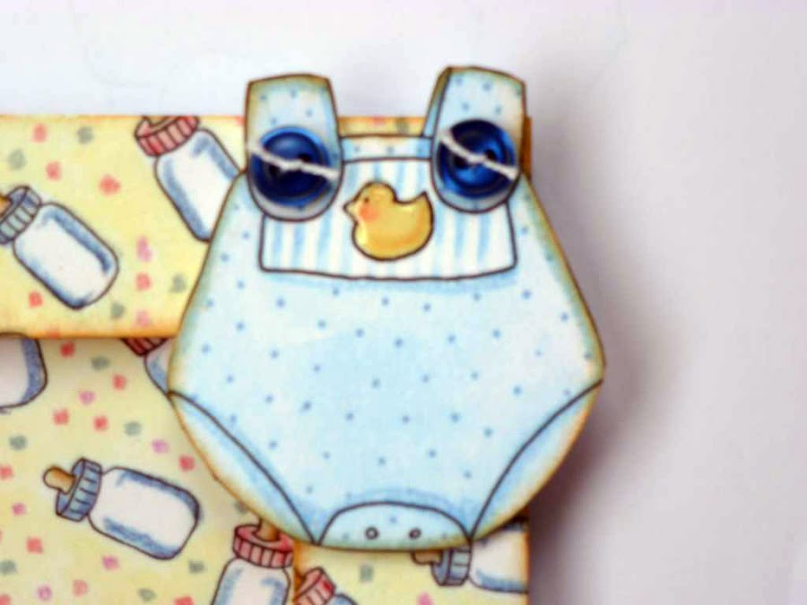 Los adornos son ilustraciones de "Belly Button Babies" que me encantan. Son infantiles sin ser empalagosos.