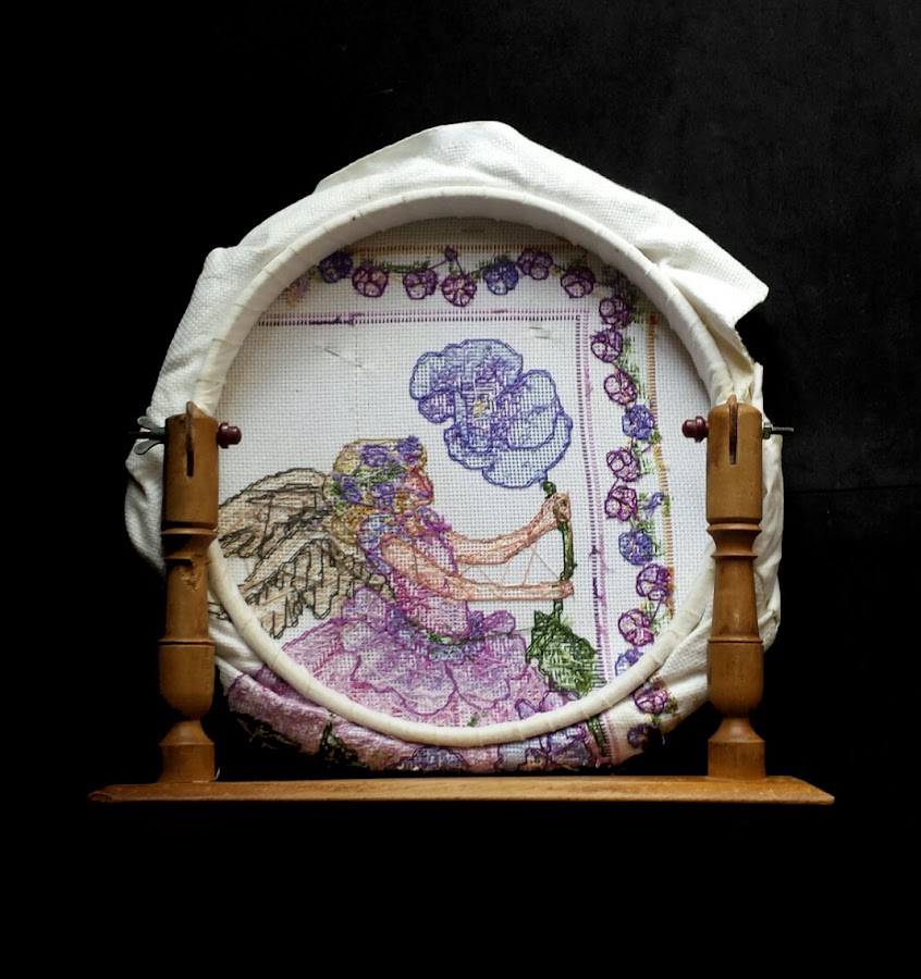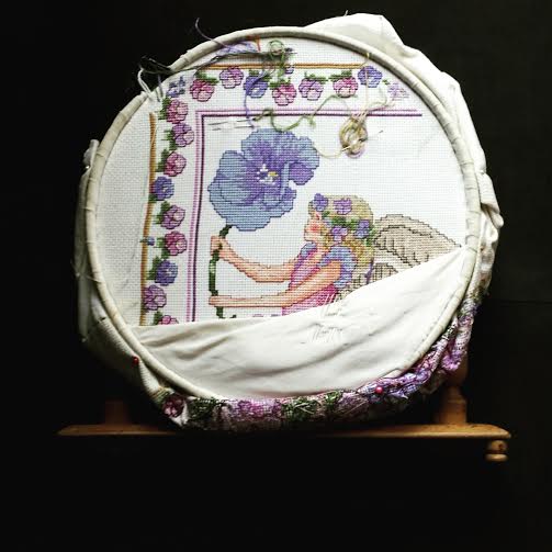 Tanto trabajo echado a perder!! Me dió pena que quedara inacabado y estoy estudiando la forma de darle fin. Es un tanto difícil no teniendo ni la carta de colores ni el gráfico pero a lo mejor con el tiempo y un poquito de esperanza aparece. Mientras tanto me recreo los ojos mirándolo. Siempre me han gustado las ilustraciones de Cicely Mary Barker y tener algo tan bonito en casa me hace feliz.