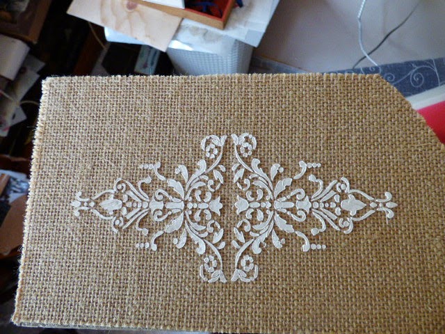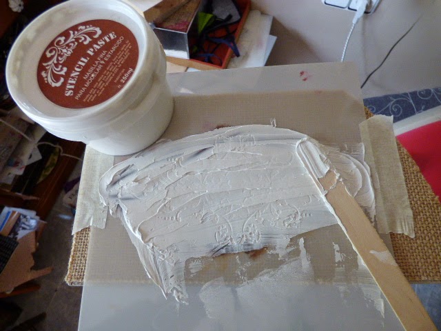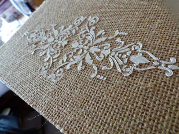 una vez seco el relieve volví a poner la plantilla encima y simplemente lo barnicé con barniz acrilico mate, dejando el color blanco de la pasta