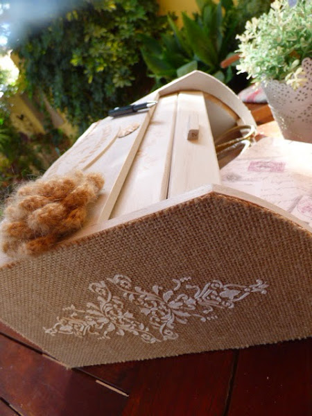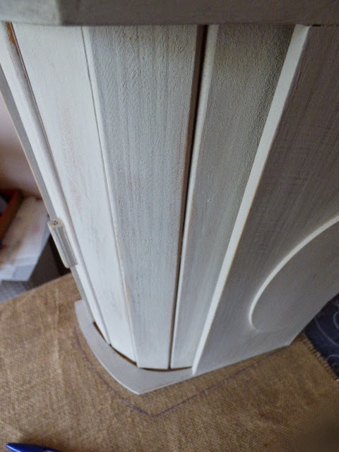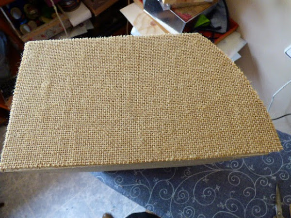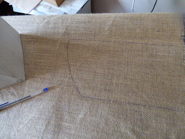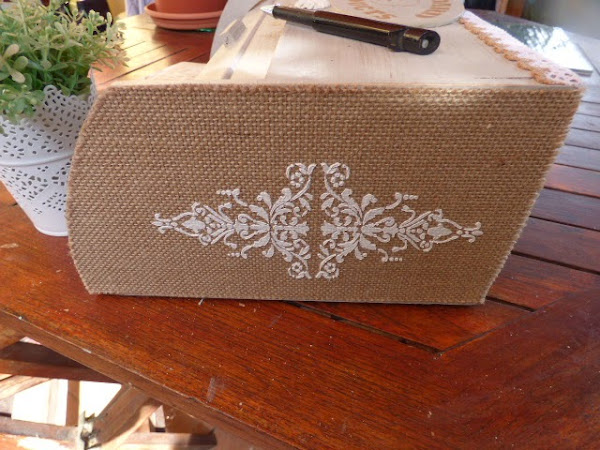 Una vez pintada, se me ocurrió forrar los laterales con tela de arpillera, así que saqué el patrón