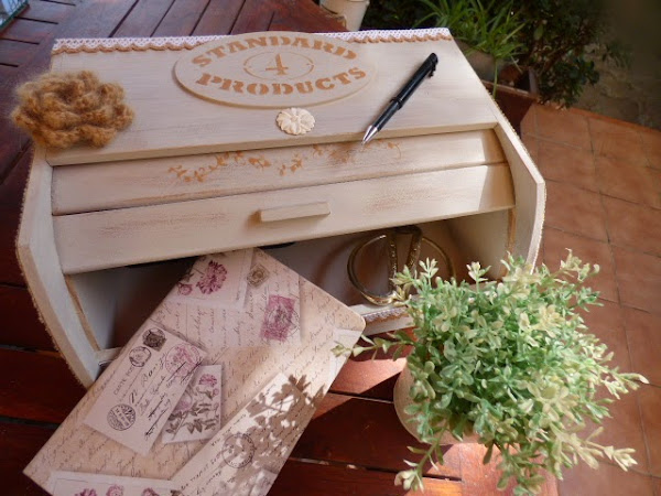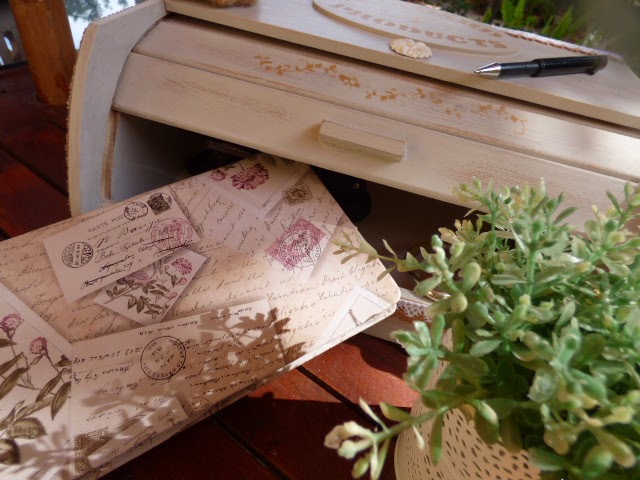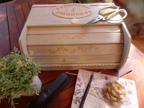 con el mismo barniz le dí a toda la panera,m antes de hacer los estarcidos....así si te equivocas en algo al estarcir, simplemente con una toallita húmeda se retira todo facilmente