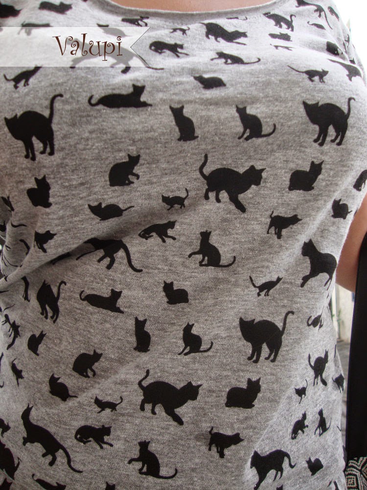 Como buenas amantes de los gatos, nos encantó esta camiseta con sombras de gatos en gris y negro. ¿No os parece muy divertida?