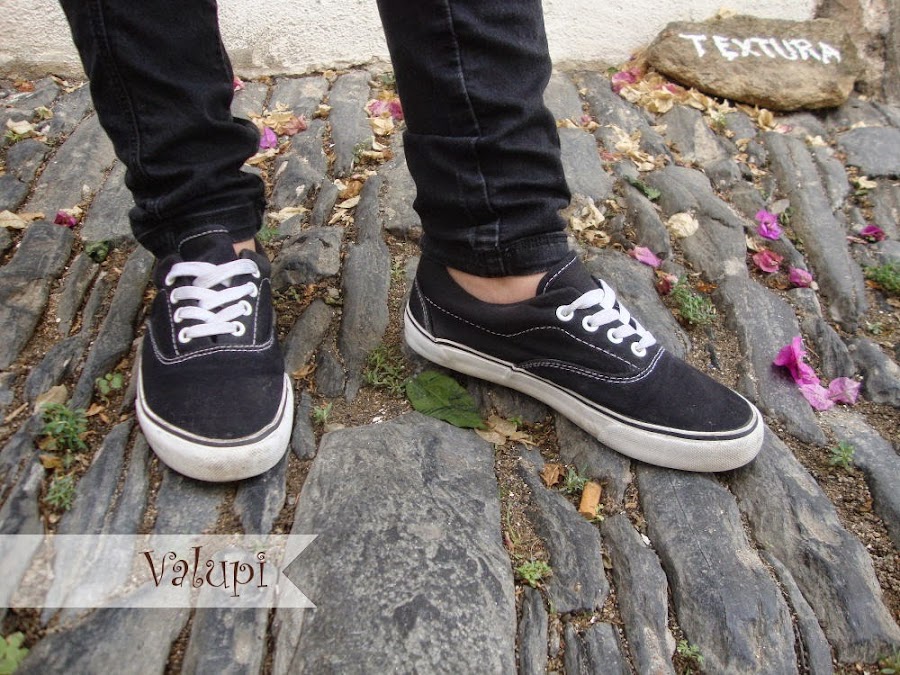 Cadaqués no es nada apto para ir con tacones, las calles del caso antiguo suelen tener pendientes pronunciadas y están pavimentadas con "rastell", es decir, piedras extraídas de la orilla del mar y posteriormente colocadas a mano. Por este motivo mejor calzar unas zapatillas cómodas como estas de imitación de Vans.