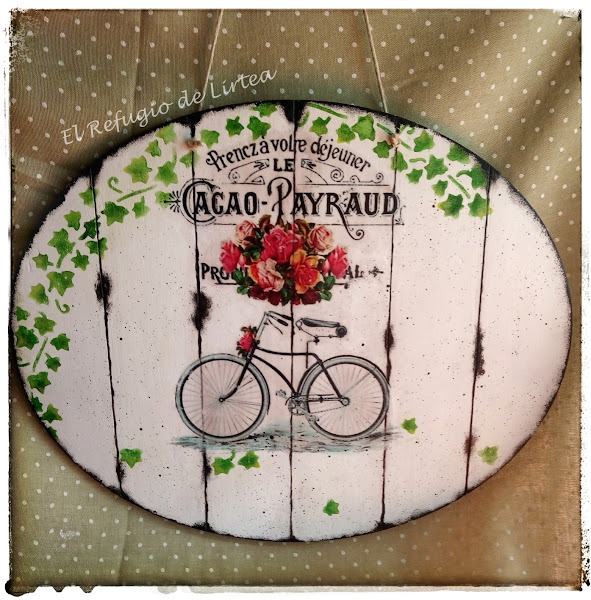 Hace unas semanas os enseñé un óvalo de madera adornado con servilleta, ideal para adornar cualquier rincón del jardín, ( aquí), hoy os muestro otro adorno esta vez con transfer.