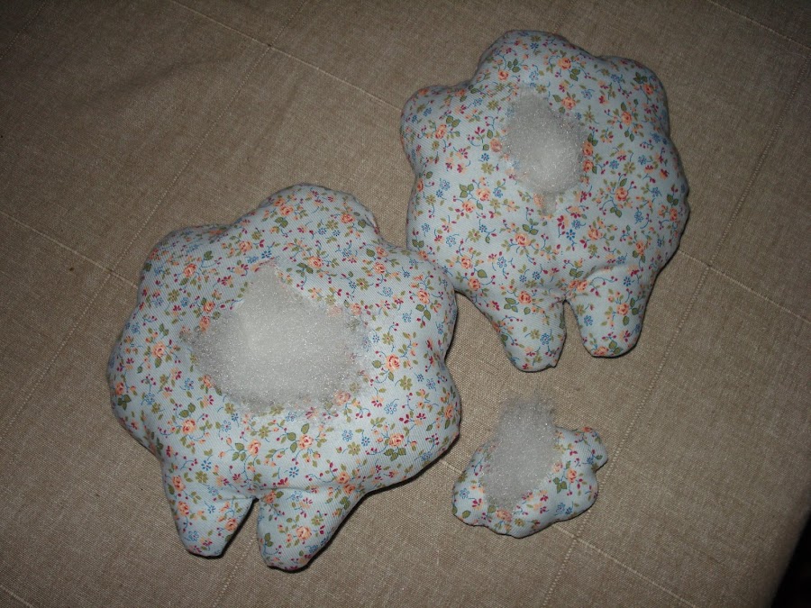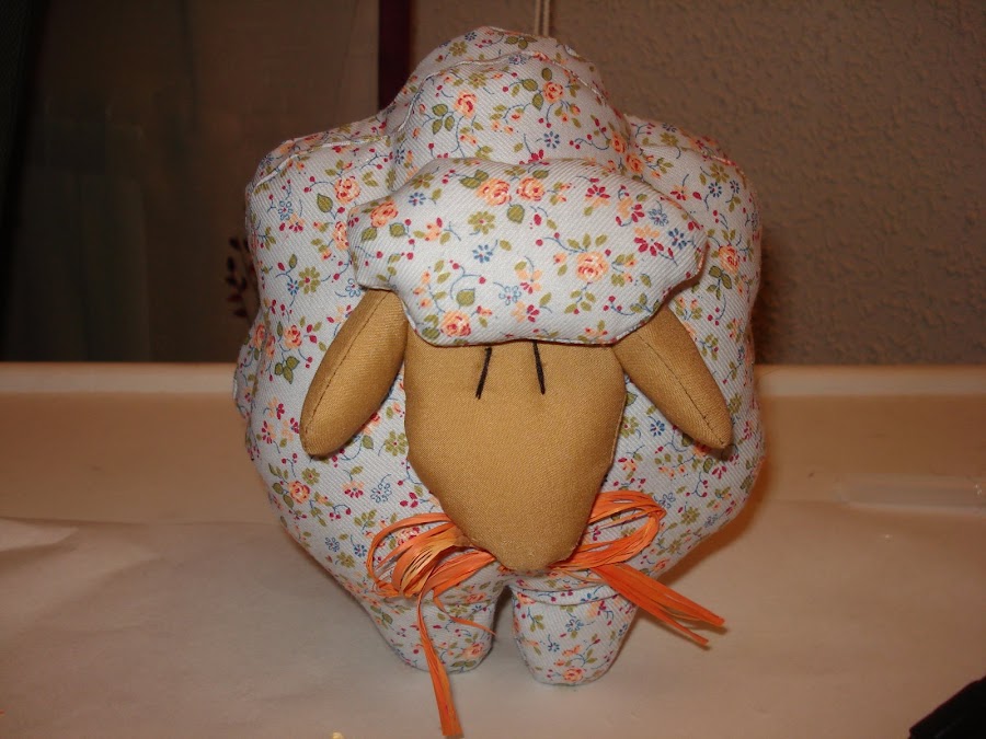 6º para finalizar, le ponemos a nuestra ovejita los detalles que nos apetezcan, yo en este caso he puesto un lacito de rafia en la parte delantera y un rabito detrás........