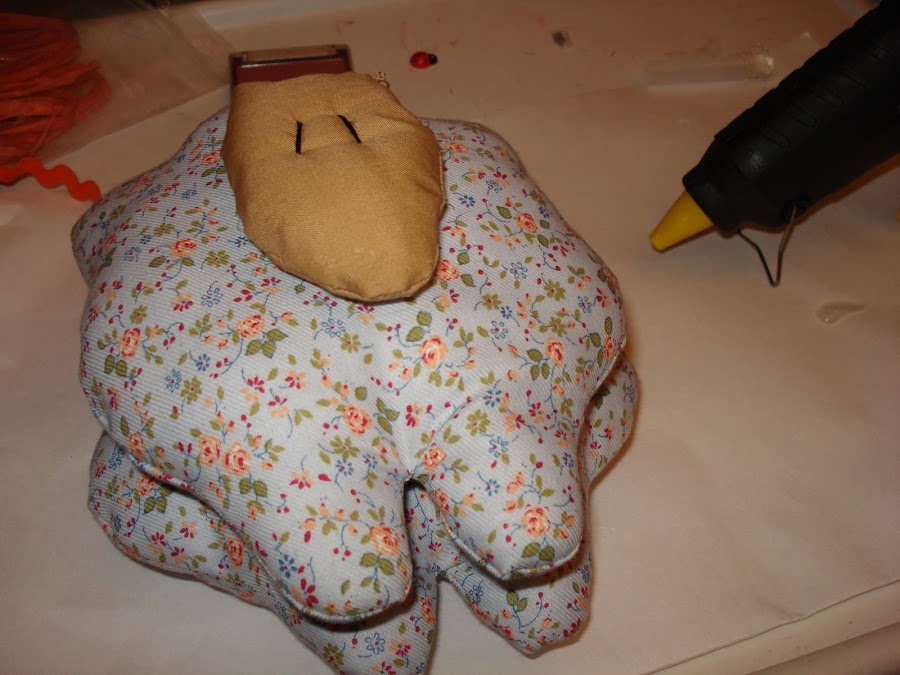 2º pasamos a la máquina las orejas y cabeza dejando una abertura en la parte superior para luego poder dar la vuelta y rellenar de guata