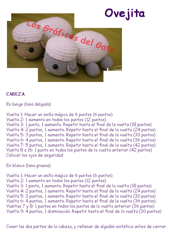 Bonito patrón de un amigurumi ovejita...