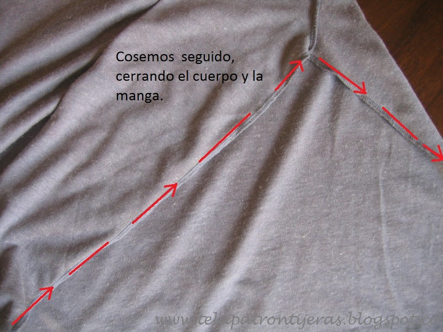 2.- Unir contorno de la sisa del delantero y espalda, con las mangas y coserlo.