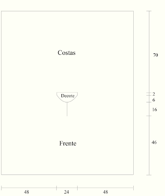en ag. nº 5 y tric. En p. calcetín. 46 cm desde el inicio del trabajo para abrir el escote