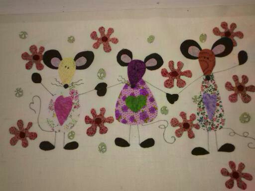 Los aplique en tela, los hicimos a puntos festón, con los colores que combinen con la tela que utilizamos. Tienes que decidir si quieres que la puntada resalte o quieres que por el contario sea lo más invisible posible. Para lo cual debes escoger el color más adecuado a las telas que hayas utilizado.