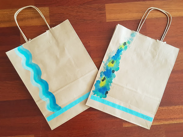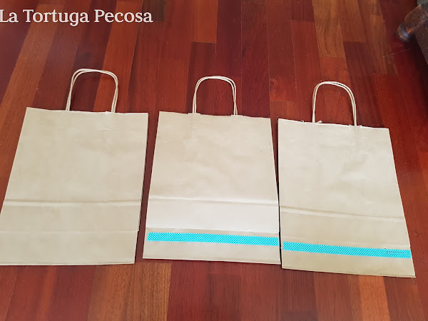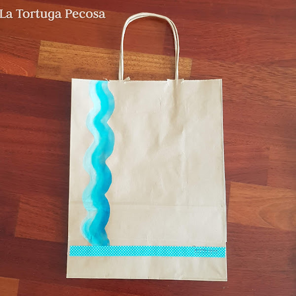 En mi caso, contaba con estas bolsas de material reciclado y decidí darles un toque personalizado en tonos azules, cogí un pincel y acuarelas y relicé varios modelos que, hacen un diseño más personasl y custom.