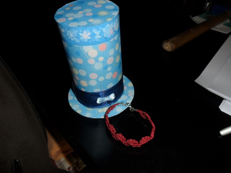 Otro de los regalos que le quiso hacer es una pulsera de micromacramé que hace mi hermana y este fué su envoltorio