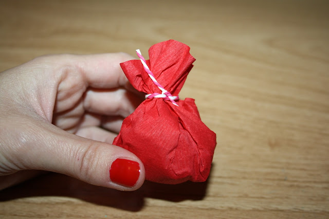 Aquí sólo necesitaremos hilo para atar los extremos, fieltro y cualquier detalle para adornar nuestro "dulce".