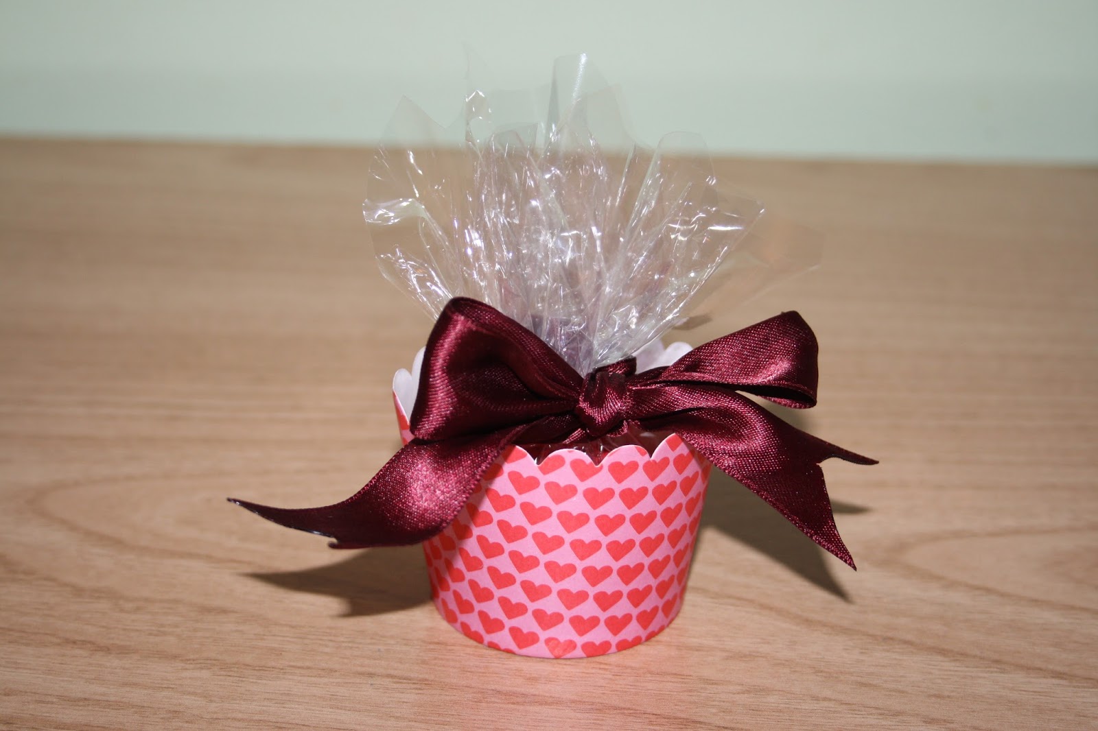 Sólo necesitaremos moldes para muffins, papel de seda, papel de celofán, pegamento, cinta, y lazo.