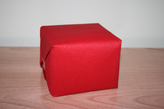 Pegamos las partes laterales y metemos el regalo dentro del sobre que acabamos de hacer.
