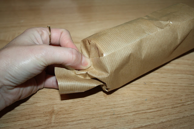 Lo primero que tenemos que hacer es empaquetar de forma normal el regalo (en este caso empaqueté un libro para que veáis mejor el efecto) y a continuación, hacemos los pompones.
