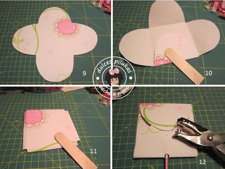 12- Con el envoltorio cerrado, hacer un agujero por donde saldrá el palito de la piruleta y colocarla dentro,