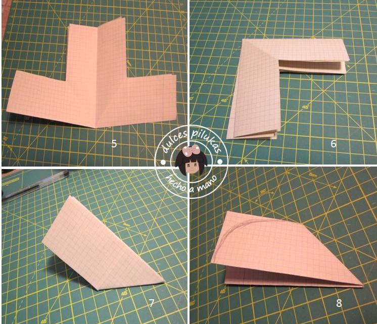 8- dibujar una curva, de un extremo a otro, tal como se ve en la foto y recortar. Nos quedará la forma de la foto 4, esta será la plantilla que utilizaremos para hacer el envoltorio.