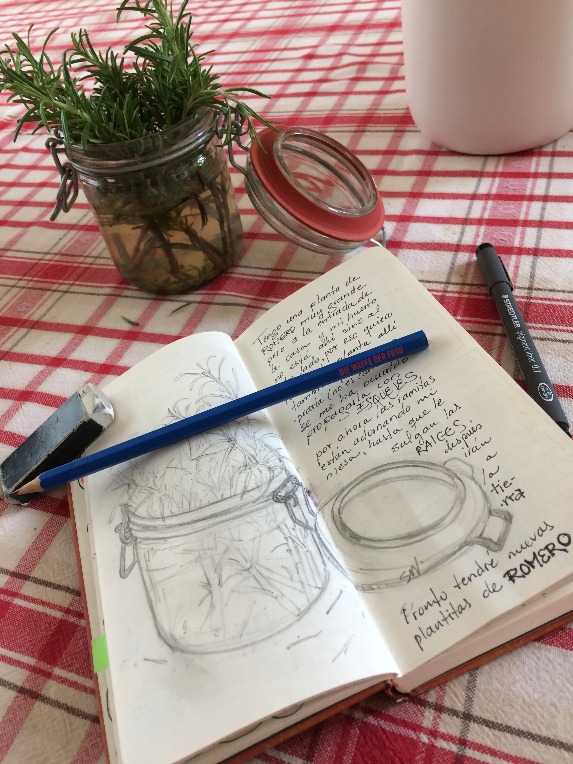 Estoy intentando que estas ramitas de romero tengan raíces, quiero hacer una plantita desde cero, mientras tanto ellas adornan la mesa del comedor