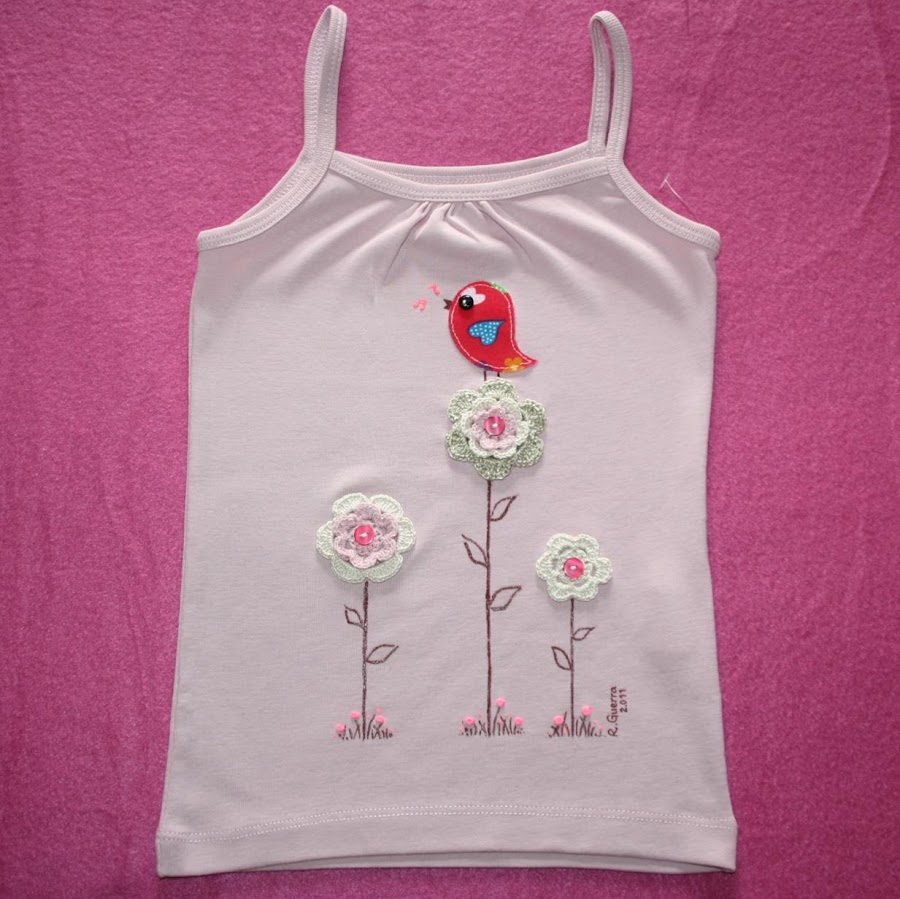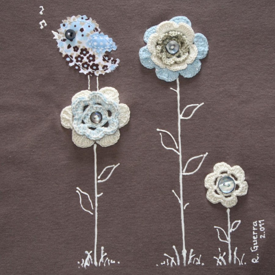 Para las dos camisetas he elegido el mismo motivo, aunque como siempre, lo hago de forma que nunca haya dos camisetas iguales. Cambia tanto la forma como el color de las camisetas, así como la disposición de los distintos apliques.