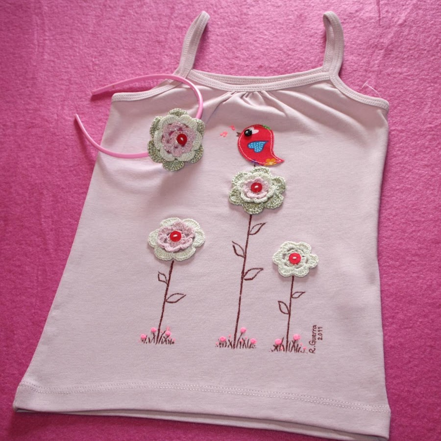 Ya he comentado que esta vuelve a ser temporada de cumpleaños para los niños. La semana pasada tuvimos un cumpleaños de una amiga de Iván y esta tarde tendremos el cumpleaños de una amiga de Abel. Así que, como de costumbre, he hecho para cada una de ellas una camiseta. Y, como en este caso los cumpleaños son de niñas, he acompañado cada camiseta con una diadema a juego.