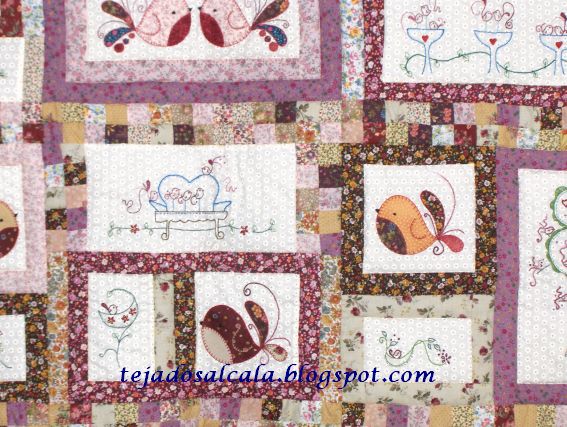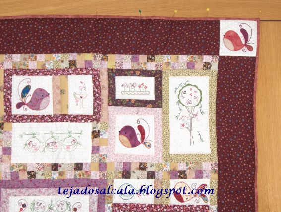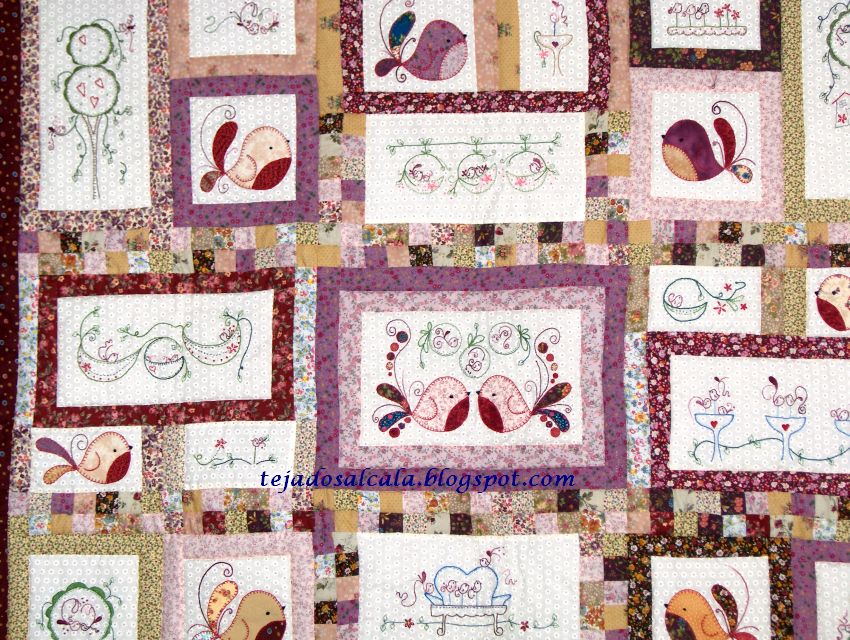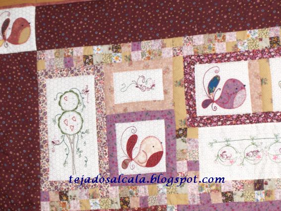 Asi es como la llamo yo,la colcha de los pajaritos.Aquí la teneis ya colocada en su sito,El cabezal de mi cama. La empezamos hace ya algún tiempo en mi grupo de patchwork.La familia del patchwork.La hicimos algunas de nosotras guiadas por Piluki de Patch y más cosas,como siempre ella es la que nos pone a trabajar,jajaja. Me encantó hacerla,el patchwor,mezclado con los bordados me encantó. Aqui ...