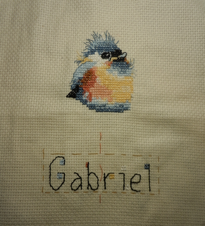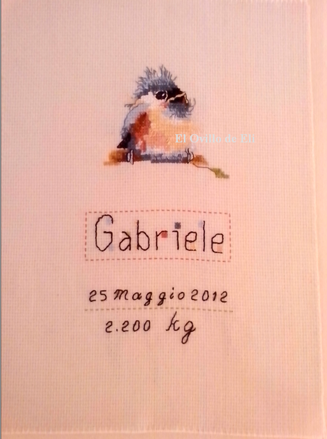 Un detalle que me sucedió, fue que tuve que corregir el nombre del bebe, ya que no era Gabriel, sino Gabriele, en italiano con e al final, tuve que descocer y volver a centrar y colocar bien el nombre.